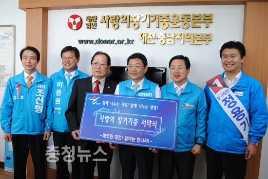 이번 서약식에는 박성효 대전시장후보를 비롯해 이장우 동구청장·이은권 중구청장·조신형 서구청장·정용기 대덕구청장 후보들이 장기기증서약서를 작성 전달함으로서 직접 실천하는 사랑을 보였다.