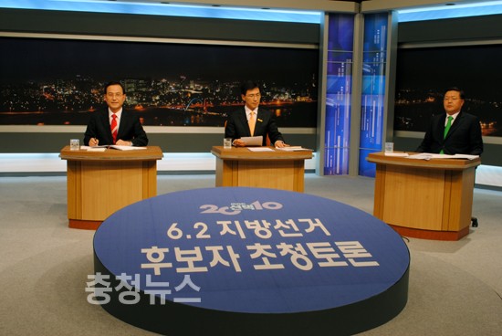 대전 MBC 충남지사후보 TV  초청토론회를 21일 오후 정순오 교수의 사회로 생방송으로 100분 동안 열렸다.