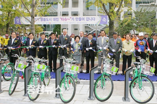 한편, 대전시는 지난 3년간 추진한 정책들을 바탕으로 자전거 이용이 일상생활속에 정착되도록 시 전역을 누빌 수 있는 ‘타슈’ 무인대여시스템 5천대를 금년말까지 보급하고 자전거와 지하철, 버스간 환승할인시스템을 구축하는 등 다양한 자전거이용활성화 정책을 속도감 있게 추진해 나갈 계획이라고 밝혔다.