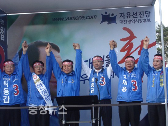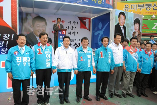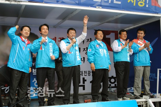 이장우, 이은권 ,정용기 구청장후보들은 "원도심을 활성화 시키려는 한나라당 후보를 지지해달라며 선진당후보가 된다면 사업이 미궁에 빠질 수 있다면서 한나라당에 힘을 결집해달라"고 호소했다.