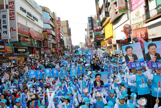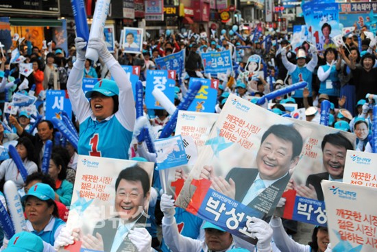 한나라당 대전시당은 30일 중구 은행동 으능정이 거리유세에서 박성효 시장후보를 비롯한 이장우 동구청장, 이은권 중구청장 후보, 조신형 서구청장 후보, 정용기 대덕구청장 후보, 진동규 유성구 청장 후보를 비롯한 시구의원출마자들이 참석한 가운데 막판 부동층을 흡수와 지지자들을 투표장으로 끌어내기 위해 사활을 건 총력전을 펼쳤다.