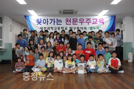 대전과학고등학교(교장 박찬승) 탐구동아리 별누리 학생들(총 15명)이 과학고에서 배우고 탐구한 천체관련 지식을 지역사회와 공유하기 위한 체험봉사활동의 일환으로 실시하는 「찾아가는 천문․우주 교육」을  26일 야간에 장동초등학교를 대상으로 실시하였다고 밝혔다.