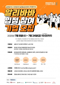 알리바바닷컴 입점지원 참여기업 모집마감은 오는 24일 오후 3시까지며, 세부사항은 재단 홈페이지(www.innopolis.or.kr)를 통해 확인할 수 있다.
