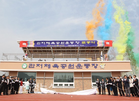 이색 축구경기, 동 대항 이어달리기 등 부대행사도 함께 열려 대전시 서구(구청장 가기산)는 25일 관저동 관저체육공원운동장 준공식을 가졌다. ▲ 관저체육공원운동장 서구 관저체육공원은 국민체육진흥기금 등 총 7억 9천여만원이 투입돼 건립, 국제규격의 인조잔디축구장과 8레인의 육상트랙, 관중석, 관리동 등을 갖추고 있다. ▲ 관저체육공원운동장 이날 준공행사에는 주민, 관계자 등 700여명이 참석했으며 풍물단의 축하공연, 남녀 대항 이색 축구경기와 동별 400m 이어달리기 경기가 펼쳐져 흥미를 더 했다. 저작권자 © 충청뉴스 무단전재 및 재배포 금지 강청자 기자 다른기사 보기 기사가 마음에 드셨나요? 충청뉴스 좋은 기사 후원하기 1,000원 3,000원 5,000원 10,000원 30,000원 50,000원 직접입력 비회원 약관동의하기 ※ 소중한 후원금은 더 좋은 기사를 만드는데 쓰겠습니다.
