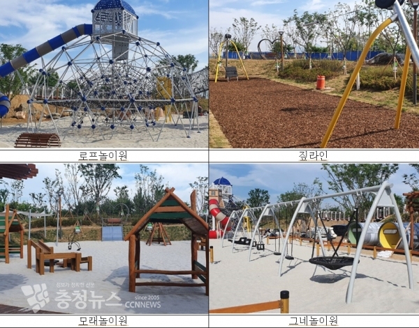 조성된 놀이터의 면적은 축구장 1개 정도의 7,400㎡이며, 주요 시설로는 모험심을 자극하는 ‘로프놀이원’, 두근두근 가슴이 뛰는 ‘짚라인’, 다 함께 즐길 수 있는 ‘회전놀이대’, ‘모래놀이원’ 등으로 구성하였으며 ‘장애물 없는 생활환경’(BF)인증을 받아 누구나 안전하게 이용할 수 있다.