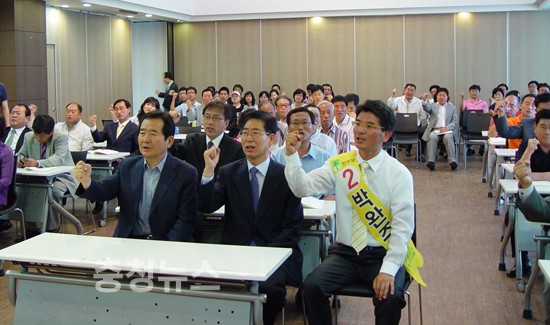 양승조 도당위원장은 “세종시, 4대강에 대한 국민의 준엄한 심판을 받아들이지 않고 있는 오만한 이명박 정권에 대해 7.28 보궐선거에서 다시한번 제대로 평가해주자”고 강조하며 “민주당의 기세와 열정을 모아 반드시 승리하자”며 선전을 다짐했다.