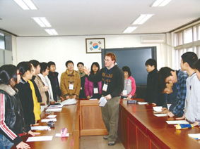 ▲ sisaforu 연기교육청(교육장 김창호)은 지난 여름방학 영어캠프에 이어, 지난 1월 4일부터 2월 24일까지 관내 7개중학교에서 미국 원어민 보조교사 3명을 초빙, 겨울방학 영어캠프를 운영하게 되어 사교육비 절감효과는 물론 영어 실력향상으로 좋은 반응을 얻고 있다. 농어촌 영어교육 활성화 연기교육청은 「농어촌 영어교육 활성화」를 위해 원어민 보조교사 확대배치로 1년동안 초등 14개교 및 중학교 7개교를 순회하면서 학생들의 영어회화를 지도한 결과 생활영어 능력이 크게 향상되었다. 특히 지난해 11월에 실시한 도내 중1·2학년 학력평가에서, 읍·면지역의 도 평균보다 월등히 높은 것으로 나타나 영어교육의 새바람을 일으키고 있다. 이번에 추진하고 있는 재미있는 Live English Camp는 연기교육청의 특색사업으로, 원어민 영어보조교사를 활용한 외국어센터에서 원어민 영어보조교사 4명과 관내 영어교사 그리고 대학생 도우미 4명의 지도로, 생활영어회화능력을 위한 수업을 전개하고 있다. 외국어 교육에 관심이 높아지고 있는 상황에서 운영되고있는 「2006 겨울방학 중 신나고 재미있는 Live English Camp」는 글로벌시대에 필요한 우수인재 양성의 토대가 될 것이며, 농어촌 교육활성화와 사랑받는 연기교육에 크게 기여하고 있다. 외국어능력신장 위해 최선 ▲ sisaforu