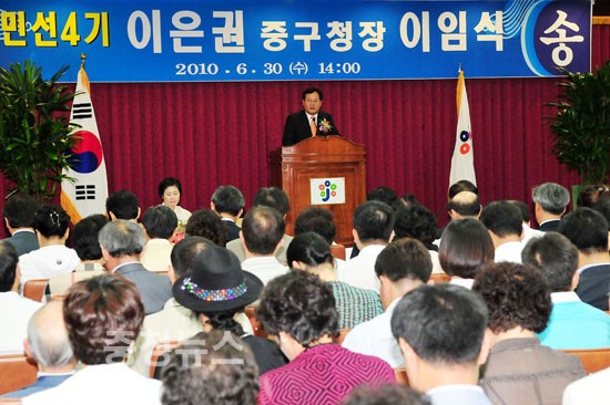 대전 중구는 지난 민선4기를 이끌어 온 이은권 중구청장의 이임식을 6월 30일 오후 2시 구청 대회의실에서 일반주민과 각급 유관기관 등 300여 명이 참석한 가운데 가졌다.