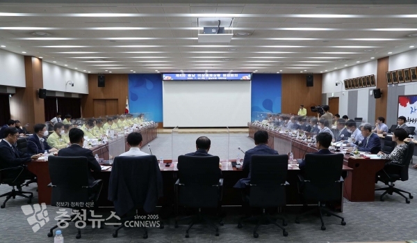 도는 30일 도청 대회의실에서 양승조 충남지사, 김용찬·이우성 행정·문화체육부지사, 각 실국 관계자 등이 참석한 가운데, ‘포스트코로나 대응 비상경제상황 점검회의’를 개최했다.
