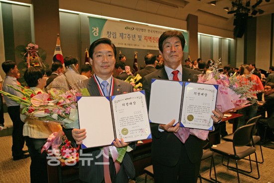 충청남도의회 이기철의원(농경위)과 김홍장의원(건소위)은 지난달 30일 한국프레스센터 국제회의장에서 열린 전국지역신문협회 창립 7주년 기념식에서 광역의원 부문에서 의정대상을 수상했다.
