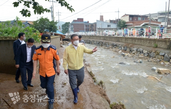 이어 급류에 휩쓸린 실종자 2명에 대한 수색 작업을 벌이고 있는 아산시 송악면 일원 상황본부를 방문해 관계자들을 격려하고, 실종자 가족에 진심 어린 애도와 위로를 표했다.