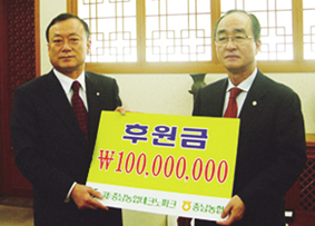 농협 충남지역본부(본부장 유상호)는 오는 4월 28일부터 5월 7일까지 예산 농업기술원에서 열리는 ‘2006 벤처농업박람회’의 성공적인 개최를 위해 충남농업테크노파크(이사장 심대평 충남지사)에 후원금 1억원을 전달했다.