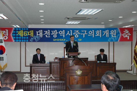 제6대 대전 중구의회(의장 윤진근)는 7일 개원식행사에 유관기관 단체장, 주민 등 100여명의 주민대표가 참석했다.
