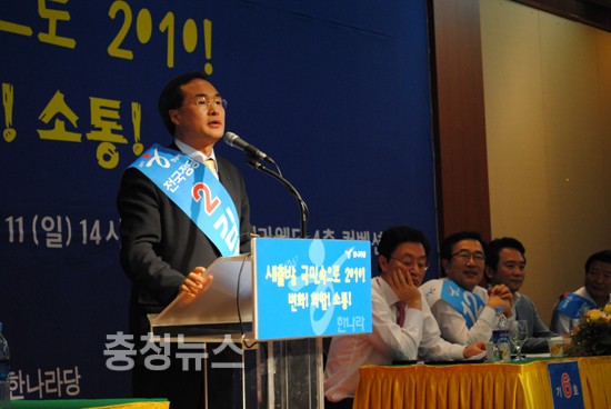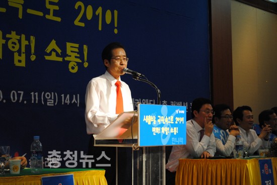 친박계 후보들은 하나같이 '세종시 논란'의 중심에 있었던 충청민심을 의식한 발언이 쏟아져 나왔다 이들후보는 "세종시 수정안을 찬성한 후보들은 당 지도부에 들어갈 자격이 없다"며 친이계에게 직격탄을 날렸다.