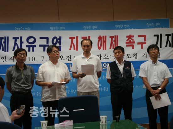 충남시국회의에서는 14일 오전 11시 도청 기자실에서 황해경제자유구역 지정 해제 촉구를 위한 기자회견을 열었다.