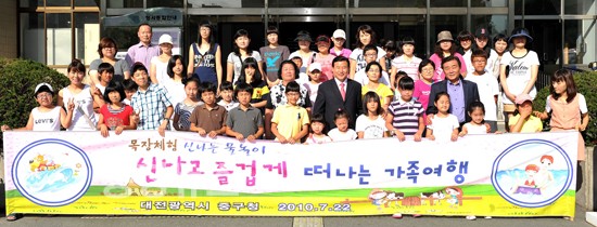 대전 중구(구청장 박용갑)는 22일 평소 시간적, 경제적 여유가 없어 여가를 함께하지 못하는 저소득 한부모가족 27세대 75명과 함께 자녀생활교육의 일환으로 ‘가족과 함께 떠나는 즐거운 여행’을 개최했다.