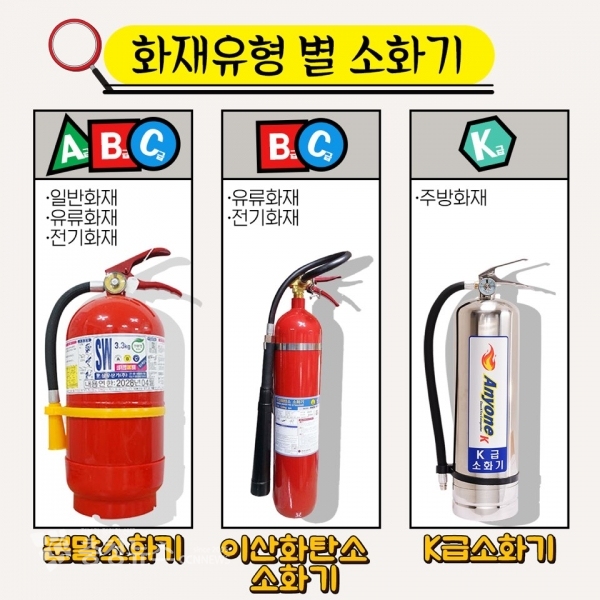 Kitchen(주방)의 앞 글자를 따온 K급 소화기란 기름 표면에 유막 층을 형성해 산소와의 접촉을 차단하고 식용유 온도를 빠르게 낮춰 주방에서 빈번히 발생하는 식용유 화재에 적합한 소화기다.