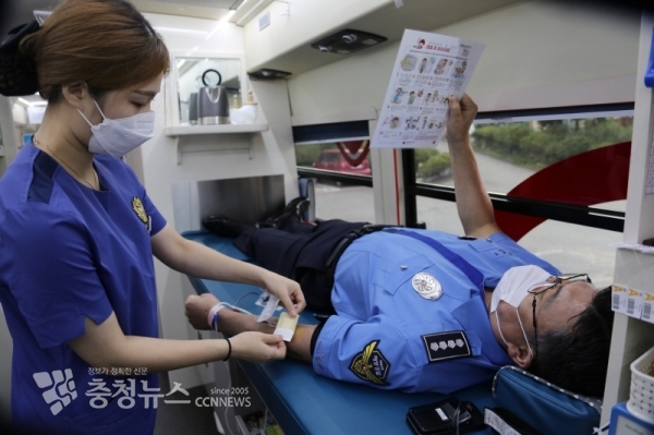 충남 태안해양경찰서(서장 윤태연)는 8일 청사내 앞마당에서 대전세종 적십자 혈액원(원장 손일수)의 ‘찾아가는 헌혈버스’ 지원 협조로 ‘생명나눔’단체헌혈을 실시했다.
