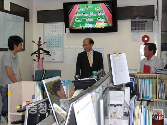 충청남도 구본충 행정부지사는 4호 태풍 “뎬무”의 영향으로 중부지방에도 천둥, 번개를 동반한 매우 강한 비가 내림에 따라 11일 재해대책상황실과 종합안전센터를 방문해 집중호우에 대비해 밤샘 근무를 선 직원들을 격려했다.