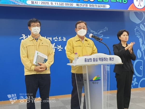 예산군 덕화온천장에서 코로나19 확진자 2명이 발생한 것과 관련 황선봉 군수가 이 소식을 알리다 눈물을 보였다.