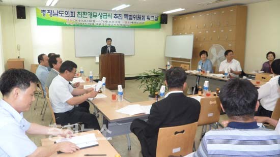 충청남도의회는 16일 예산도서관에서 도의원과 관계 전문가들이 참석한 가운데 친환경 무상급식에 대한 추진 계획 수립과 대안을 마련하기 위한 워크숍을 개최했다.