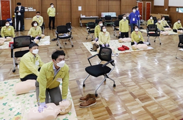 이어 오후에는 서산의료원(원장 김영완) 의료안전실 조은영 실장을 비롯한 4명의 강사를 초빙해 심폐소생술 교육을 실시했다.
