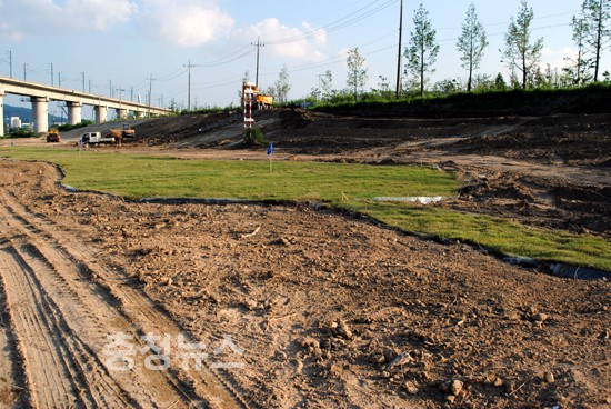 이미 공사가 완료된 14개 홀은 골프장에 깔린 잔디의 상태가 울퉁불퉁하고, 홀과 홀 사이의 러프지역도 맨땅에다가 씨앗만 심어놓은 채 조잡하게 공사가 진행중이었다.