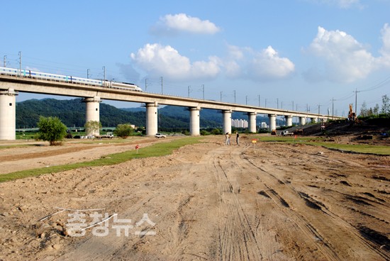 ▲ 갑천변에 위치한 파크골프장 공사현장