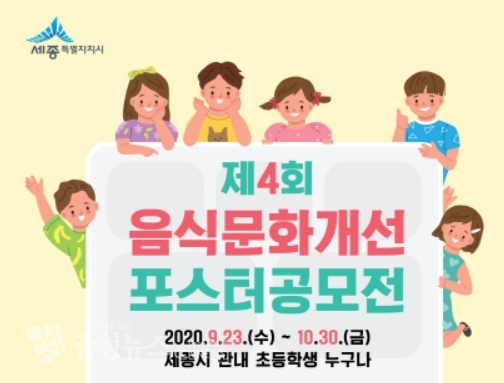 세종특별자치시(시장 이춘희)가 오는 30일까지 세종시 소재 초등학교 학생을 대상으로 ‘제4회 음식문화개선 포스터 공모전’을 개최한다.