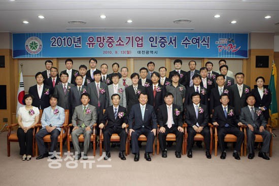 대전광역시(시장 염홍철)는 (주)트루윈 등 37개 업체를 2010년도 ‘대전광역시 유망중소기업’으로 선정, 13일 오전 10시 시청 대회의실에서 업체 대표와 임직원이 참석한 가운데 인증서 및 인증패 수여 행사를 개최했다.