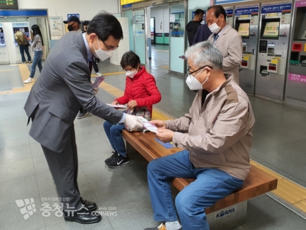 이와 함께 천안역사에서 시민들을 대상으로 마스크를 배포하며 안전한 열차이용을 당부했다.