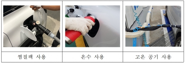 이러한 문제점을 해결하기 위해 각 지역 수소충전소들은 다양한 방법으로 아이싱 문제를 아래와 같이 해결하고 있지만 뚜렷한 대책은 없는 실정이다.