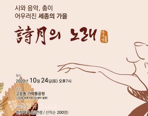 세종문화원은 오는 24일 저녁 7시 가락뜰근린공원에서 세종문화야행 세 번째 공연인 모두의 문화거리-고운 '詩月의 노래'를 펼친다.