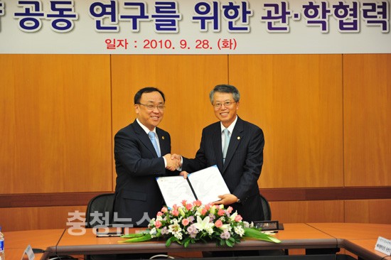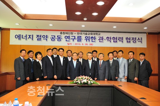 충청체신청(청장 이상진)과 한국기술교육대(총장 전운기)는 28일 오전 11시 대학 내 본관2층 중회의실에서 에너지절약 및 우편물류 프로세스 업무혁신 공동 연구를 위한 관․학 협력체결식을 가졌다.