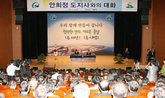 서산문화회관 대강당에서 이뤄진 각계각층 도민 600여명과의 대화에서는 태풍피해로 바쁜일정에 불구하고 자리에 참석하신 시민들에게 고마움을 표시하고, 피해민들에게 실질적인 보상책 마련에 최선을 다하고 도 차원의 신속한 복구노력에 전력을 다할 것을 약속했다.