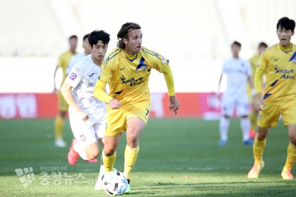충남아산FC는 분위기 반전이 절실하다. 지난 22라운드 대전전 승리 이후 내리 3연패를 하며 최하위에서 벗어나지 못하고 있다. 지난 안양전에서 후반 16분, 유종현의 퇴장으로 수적 우위를 가져가며 안양의 골문을 위협했지만 끝내 골망을 가르지 못하며 3연패 수렁에 빠졌다.
