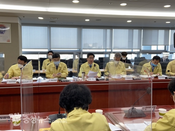 양승조 지사는 2일 제144차 실국원장회의를 열고 "그동안 탈석탄과 미세먼지대책, 탄소제로와 기후위기 대응 등 친환경 에너지정책을 실천했다"며 "국회연설은 이런 노력에 대한 응답이다. 충남이 이끌어 낸 대한민국 탄소 제로의 구상을 더 힘차게 이끌고 가겠다"고 강조했다.