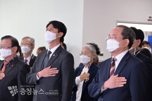 국기에 대한 경례를 하고 있는 이태환 의장과 류순현 행정부시장