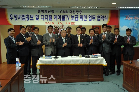 충청체신청(청장 이상진)은 11일 체신청 4층 대회의실에서 CMB대전방송(대표이사 이한성)과 우정사업 홍보 및 디지털 케이블TV보급을 위한 업무협약을 체결했다고 밝혔다.