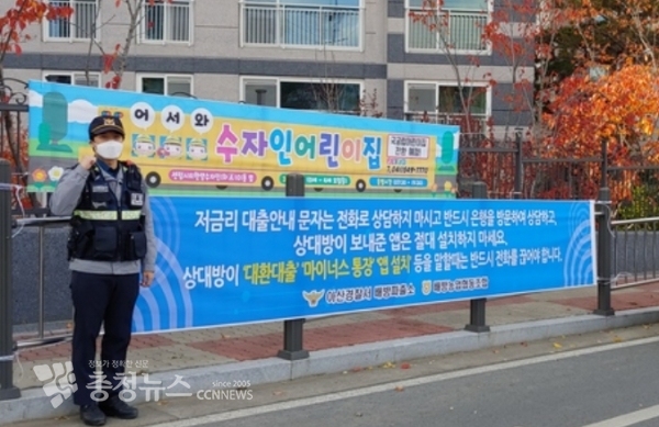 한편 배방파출소는 보이스피싱 피해사례 예방 문구를 적시한 플래카드를 제작하여 관내 곳곳에 게시하여 주민들의 피해를 예방하는데 최선을 다하고 있다.
