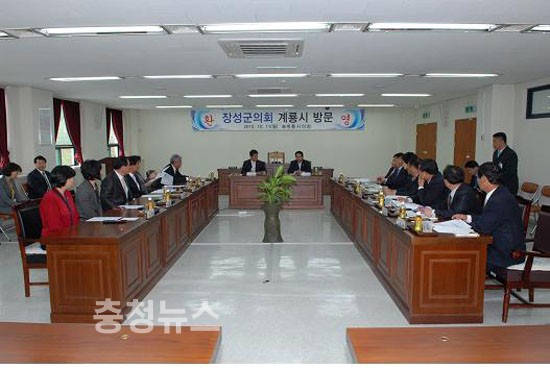 충청남도 계룡시의회(의장 류보선)는 지난 11일 오후 전남 장성군의회(의장 김상복) 일행을 접견하고 지방의회의 상호간 협력관계를 유지하고 발전 방향을 모색하는 등 뜻깊은 자리를 가졌다.