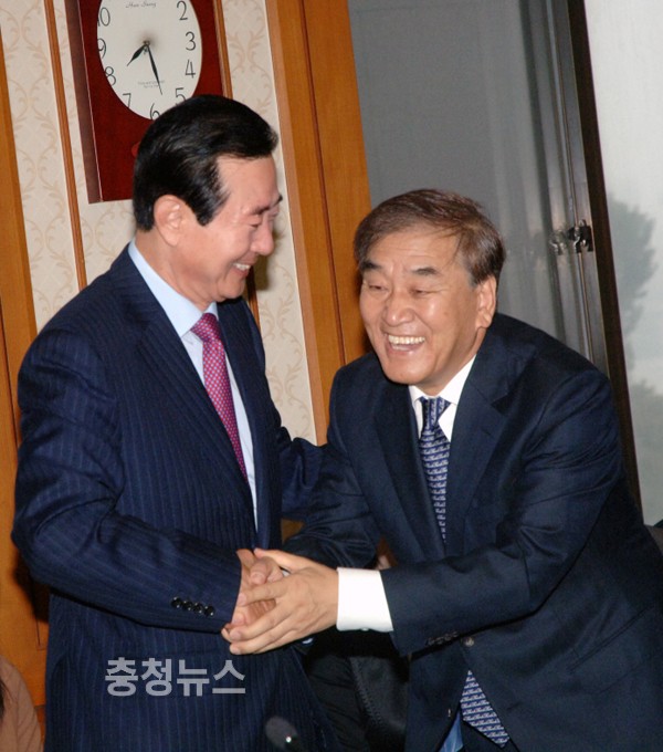 ▲ 변웅전 의원과 이재오 특임장관이 악수를 교환하고 있다