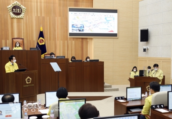 제66회 정례회 2차 본회의에서 시정질문에 나선 임채성 의원은 "행복도시 건설 지역에서 부적절한 각종 사업 추진으로 인해 지역 주민들 간 갈등 상황을 유발하고 있다"고 지적했다.