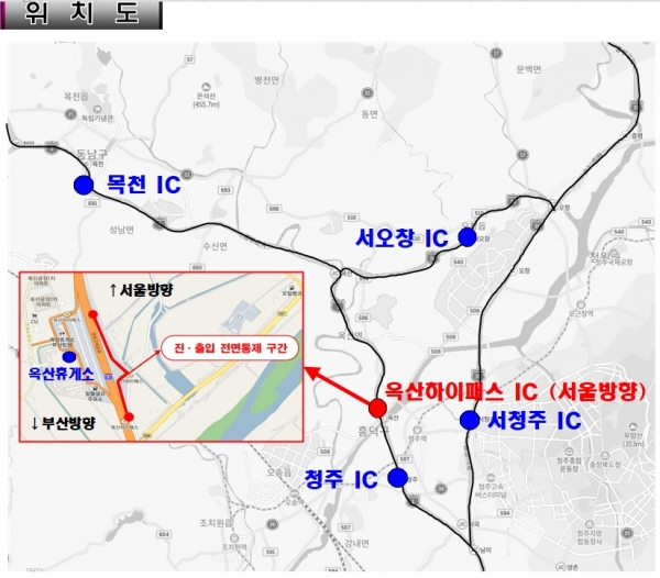 한국도로공사 대전충남본부 관계자는 “11월 18일(수요일) 해당 시간대에 옥산하이패스IC를 이용 예정인 고객께서는 다소 불편하시더라도 인근 IC(청주IC, 서청주IC, 서오창IC, 목천IC)로 우회하여 이용해 주시기를 바란다”라고 전했다.