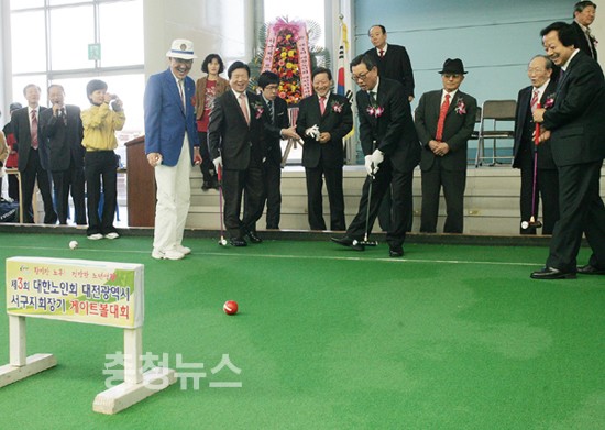 대전시 서구(구청장 박환용) 전민동 전천후 게이트볼구장에서는 제3회 대한노인회 대전서구 지회장기 게이트볼 대회가 2일 열렸다.