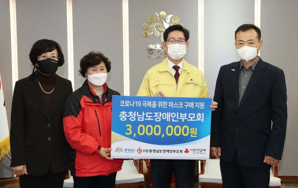 충청남도장애인부모회가 코로나19 극복을 위한 마스크 구매 지원금 300만 원을 충남도에 기탁했다.