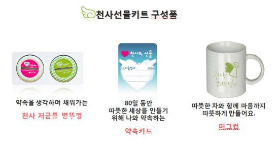 천사선물 키트(천사머그컵,천사저금통 병뚜껑 등)로 기부