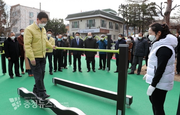 이 자리에서 양승조 지사는 “먼저 고령화 사회를 경험한 유럽과 일본에서는 아이와 어르신이 함께 운동하는 모두를 위한 놀이터를 늘리는 추세”라며 “어르신 놀이터는 건강을 증진하고, 서로 소통하는 커뮤니티 역할을 톡톡히 해낼 것”이라고 덧붙였다.