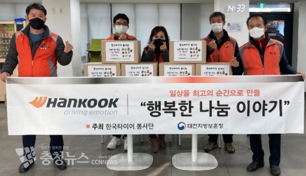 한국타이어 봉사단(회장 김홍렬)은 8일 대전시 대덕구 소재 보훈대상 독거노인 10여 가정을 방문하여 밑반찬을 전달하고 비대면으로 반찬을 전달해드리는 ‘행복한 반찬 나눔 이야기’ 봉사활동을 진행했다.