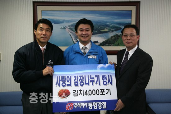 김은태 동양강철 대표이사는 “최근 경제난과 배추가격 등 물가의 상승으로 겨울나기를 위한 김장마저 담그지 못하는 어려운 이웃이 늘어날 것으로 걱정했다” 며 “정성이나마 주변의 어려운 분들에게 따뜻한 도움이 되었으면 좋겠다는 생각으로 이번 행사를 마련했다” 고 말했다.